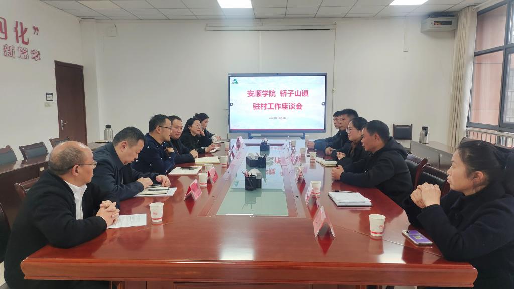 服务安顺地方经济社会发展和乡村振兴驻村帮扶实践水平,应学校邀请,12月2日下午,西秀区轿子山镇党委委员、组织委员郑沛雯带领轿子山镇党建办工作人员和张官村村干部代表来校开展驻村帮扶工作对接和交流。受