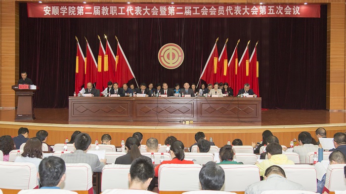 2018年4月23日上午, 第二届教职工代表大会暨第二届工会会员代表大会第五次会议在学校学术报告厅隆重召开。 党委书记罗荣彬,党委副书记、院长刘雷,党委副书记陶文彩,副院长熊国敏、王芳恒、令狐荣涛、郭本华,正式代表、列席代表共164人出席会议。