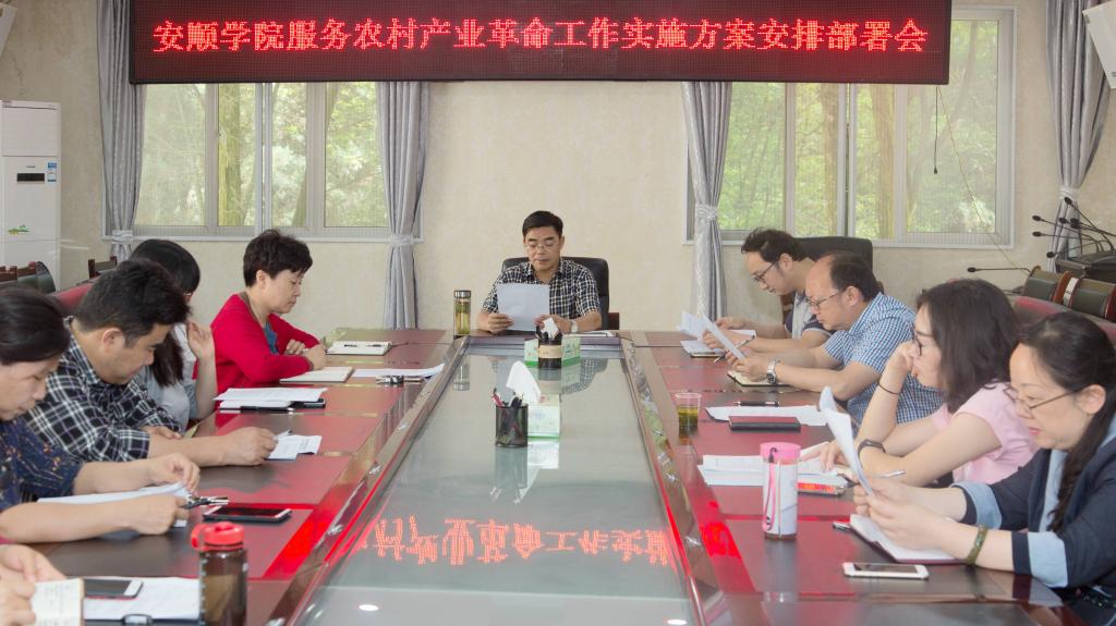 校农结合服务农村产业革命工作实施方案安排部署会在行政楼二楼会议室召开。党政办、组织部、发展规划处、教务处、科研处、计财处、校农结合工作专班办公室、后勤处、团委、省级人文社科基地、屯堡文化研究中心、安顺试验区发展研究中心、旅游与文化产业研究中心、继续教育学院、国家职业技能鉴定所、大学生创新创业学院(中心)、农学院、经济与管理学院、旅游学院、资源与环境工程学院、艺术学院等单位负责人参加会议。会议由王芳恒副院长主持。