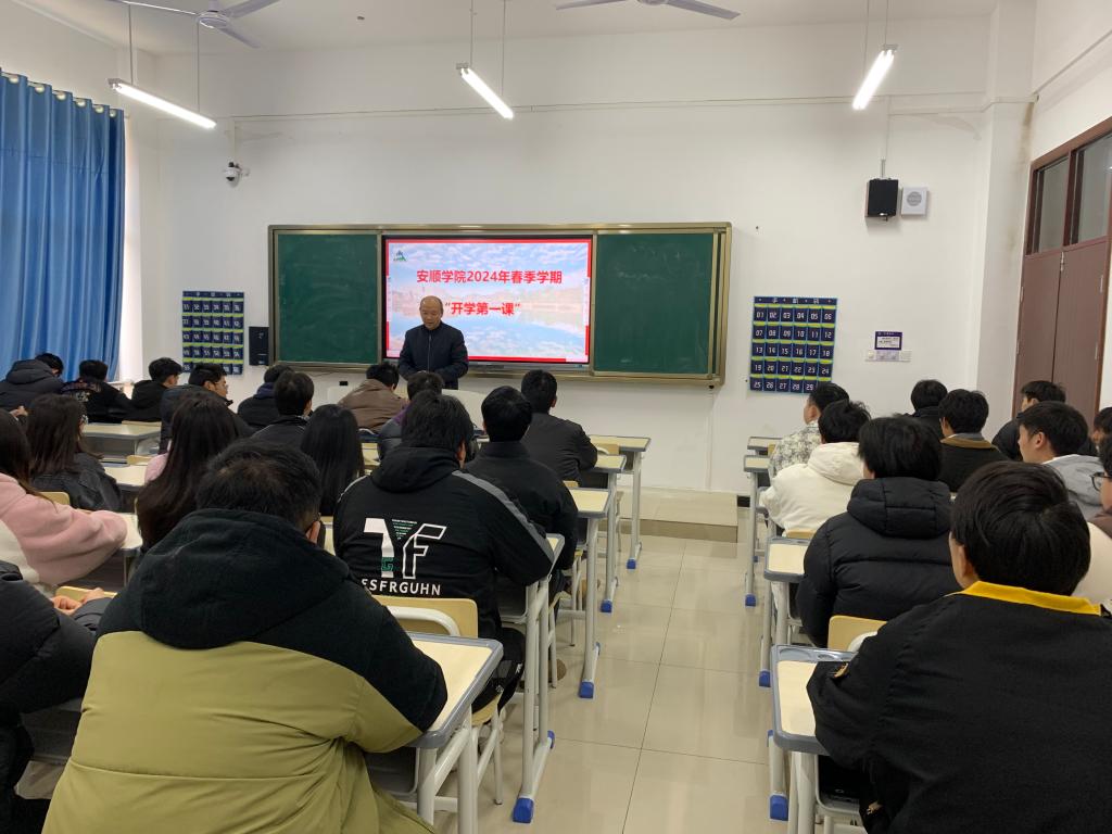 党委委员、副校长郭本华在顺理楼2-32教室为2021级电子信息工程班讲授2024年春季学期“开学第一课”思政课。