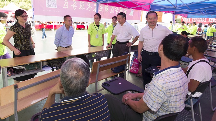 党委书记罗荣彬、院长吴次南走访迎新现场,亲切看望前来报到的新同学和家长,并慰问参加迎新工作的教职工和学生志愿者。