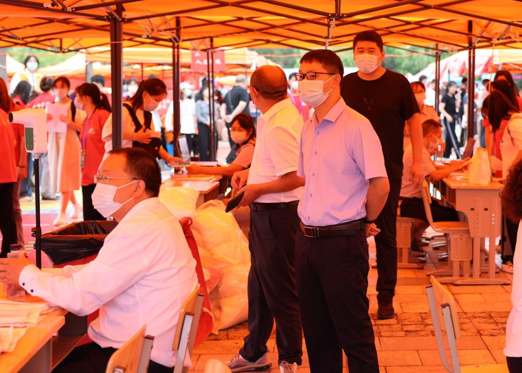 罗荣彬、陈云坤一行慰问了参与迎新工作的教职工和志愿者,了解了新同学报到咨询、饮食保障、住宿安排等方面的情况,充分肯定了大家在迎新中表现出的工作热情和敬业精神,强调大家做好疫情防控,确保校园安全稳定的同时,要为新生提供细致周到的服务,要秉承细致引导、耐心讲解的服务意识,努力为新同学及家长提供热情、细致、全面的服务。