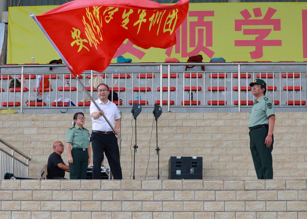 党委书记罗荣彬为军训团授旗
