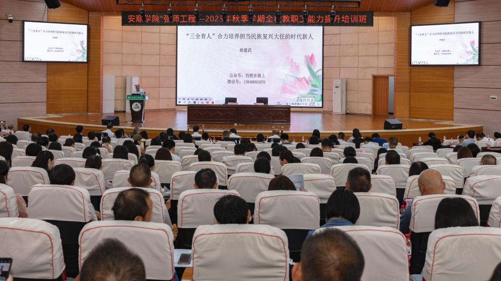 曲建武教授以“‘三全育人’合力培养担当民族复兴大任的时代新人”为题作培训
