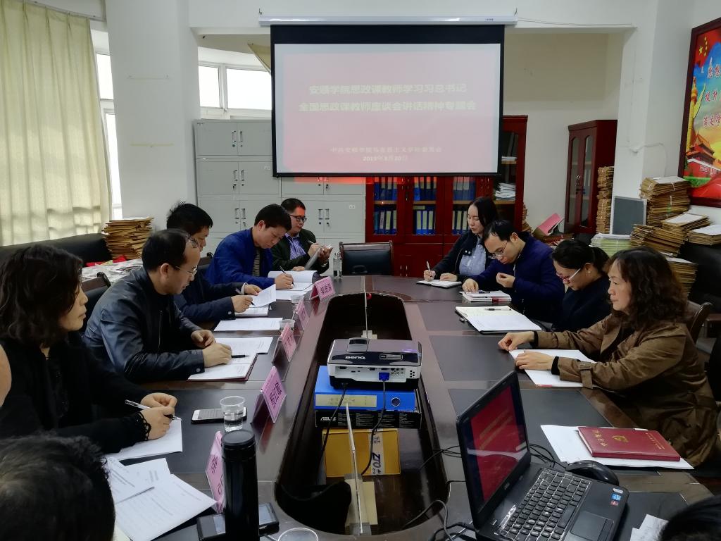 思政课教师学习习近平总书记在学校思想政治理论课教师座谈会上重要讲话精神专题会在马克思主义学院会议室举行。