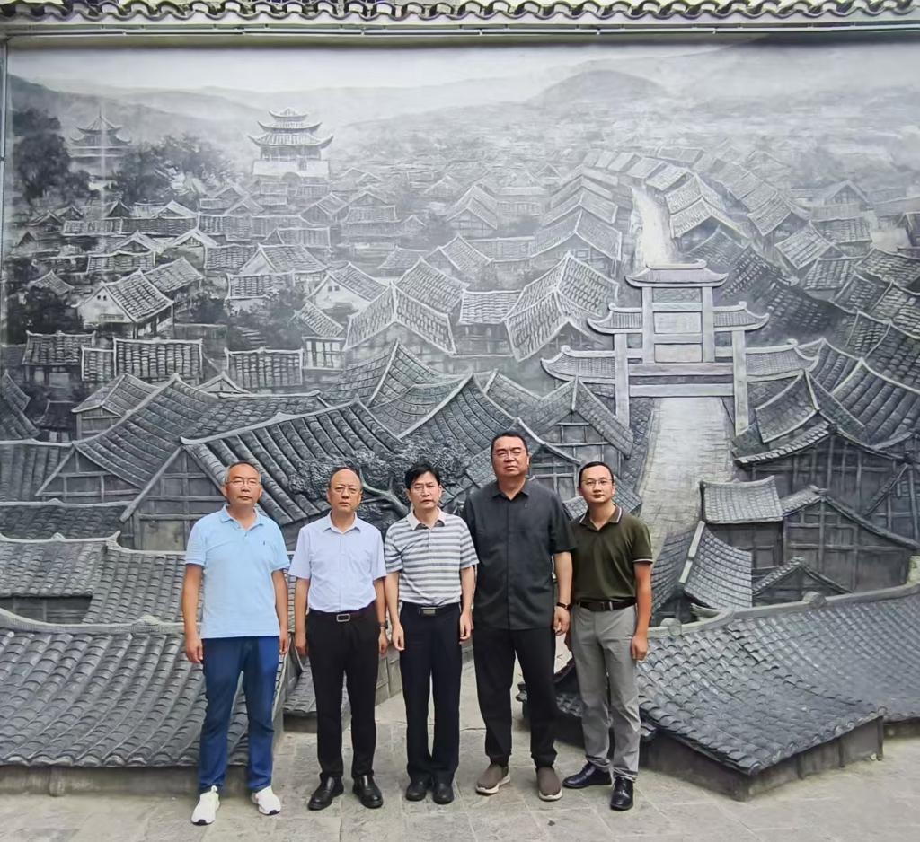 名誉院长石培华(中)、学院党委书记程绪权(左二)安旅集团董事长吴宏建(右二)考查古城