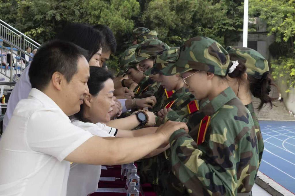 主席台就座的领导为2025级新生佩戴校徽,一枚枚校徽承载着学校的厚重历史与精神传承,同时,也标志着2025级新生正式成为安院大家庭的一员。此刻,每一位新生都真切地感受到了胸前的责任与使命,新一代大学生时不我待、舍我其谁的精神面貌。